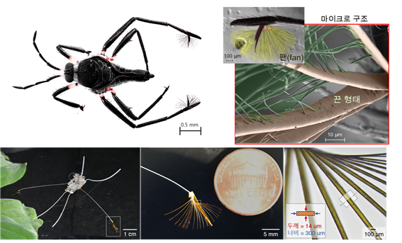 연구팀은 21개의 끈 형태의 인공 털로 부채꼴 구조를 제작해 곤충 크기의 네임드카지노에 적용했으며, 이러한 구조가 물 속에서 강한 추진력은 물론 민첩한 방향 전환까지 가능하게 한다는 사실을 확인했다. 이를 통해 연구팀은 라고벨리아의 다리 끝 부채꼴 구조가 근육의 힘으로 펼쳐지는 것이 아니라, 수중 환경과의 상호작용(탄성-모세관 현상, 얇고 유연한 구조가 물의 표면장력과 탄성으로 인해 빠르게 변형되는 현상)으로 인해 다리가 물속에 들어가면 0.01초 이내에 스스로 펼쳐지고, 물 밖에서는 즉시 접히는 초고속 자가 변형 구조를 갖는다는 것을 밝혀낸 것이다.