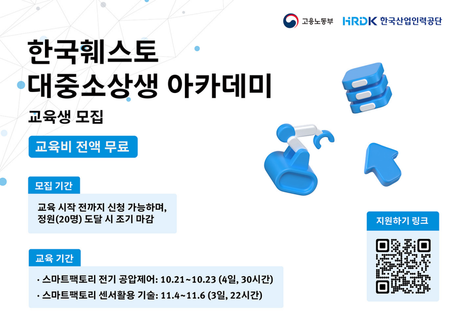 산업 자동화 및 스마트 솔루션 분야의 선두기업 한국훼스토(대표이사 연승훈)가 2025년 ‘대중소상생 아카데미’ 바카라 사업자로 공식 선정되어, 중소기업 재직자의 직무 역량을 강화하기 위한 훈련 과정을 제공할 예정이라고 밝혔다.