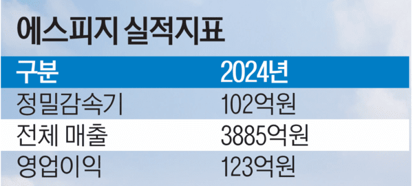 에스피지의 정밀감속기 사업은 올해부터 본격적인 성과를 내기 시작했다. 지난해 정밀감속기 부문 매출은 100억원을 넘어 섰고, 올해는 두 배 이상 늘어난 200억~250억원 규모가 될 것으로 예상되고 있다. 이어 2026년 350억원, 그리고 2027년에는 지난해 대비 5배 수준인 500억원 안팎이 될 것으로 기대하고 있다.