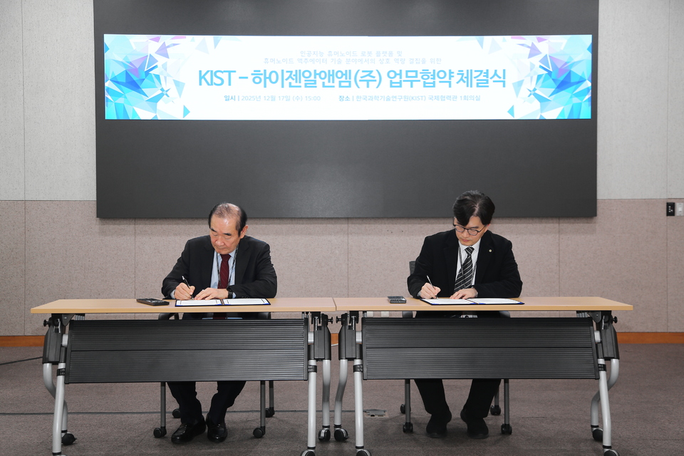 한국과학기술연구원(KIST) AI‧블랙잭 카드카운팅연구소와 하이젠알앤엠은 인공지능 휴머노이드 분야의 상호 협력 양해각서(MOU)를 17일 체결했다.