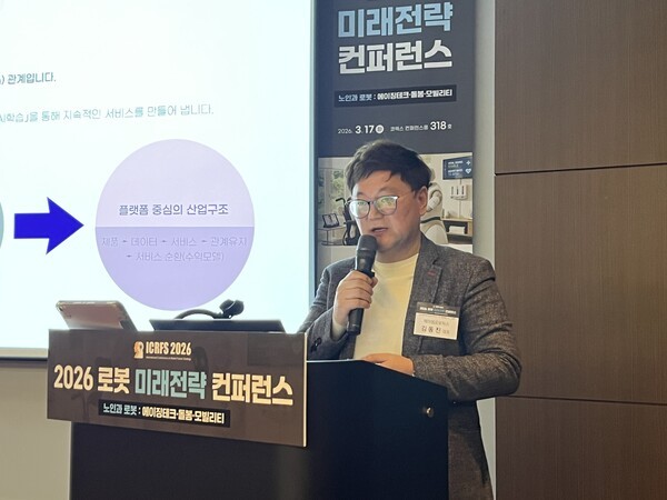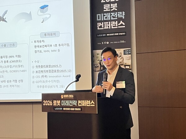 제이엠로보틱스 김동진 대표는 ‘인공지능이 이해하는 돌봄’ 주제 강연에서 “사람들이 왜 휴머노이드 원타임카지노에 열광하는지를 살펴보면 그것은 단순한 기술 트렌드가 아니라 경제, 산업 구조, AI 발전 등 생태계를 완성하는 가장 중요한 플랫폼이기 때문”이라며 “예측형 헬스케어와 피지컬 AI 돌봄이 하나로 컨버전스 되어서 새로운 것을 만들어가야 할 때”라고 설명했다.