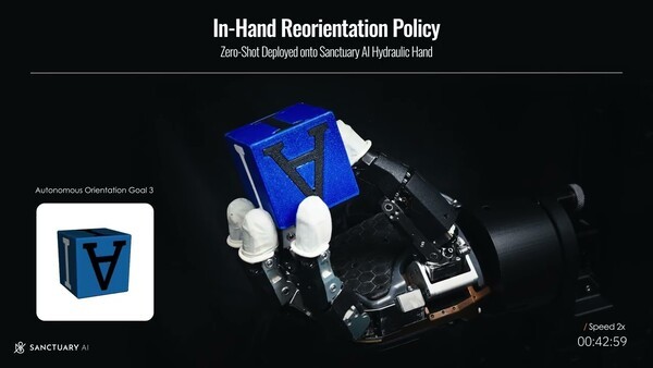 캐나다 밴쿠버에 위치한 범용 휴머노이드 스피드 바카라 사이트 개발기업인 ‘생추어리 AI(Sanctuary AI)’가 시뮬레이션에서 학습한 데이터를 실물 스피드 바카라 사이트에 즉각 적용해 복잡한 손동작을 수행하는 ‘제로샷(Zero-shot) 인-핸드 매니퓰레이션’ 기술 시연에 성공했다고 1일(현지시간) 밝혔다.